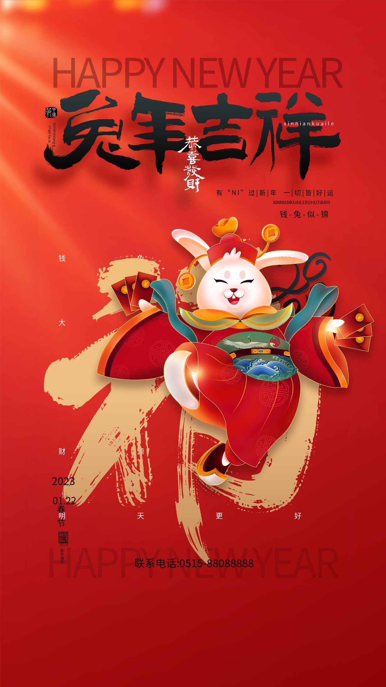 值此新春佳節到來之際,宏順建設給大家拜年了!恭祝大家身體健康、闔家歡樂!愿大家2023兔飛猛進、共謀發展、共繪未來!