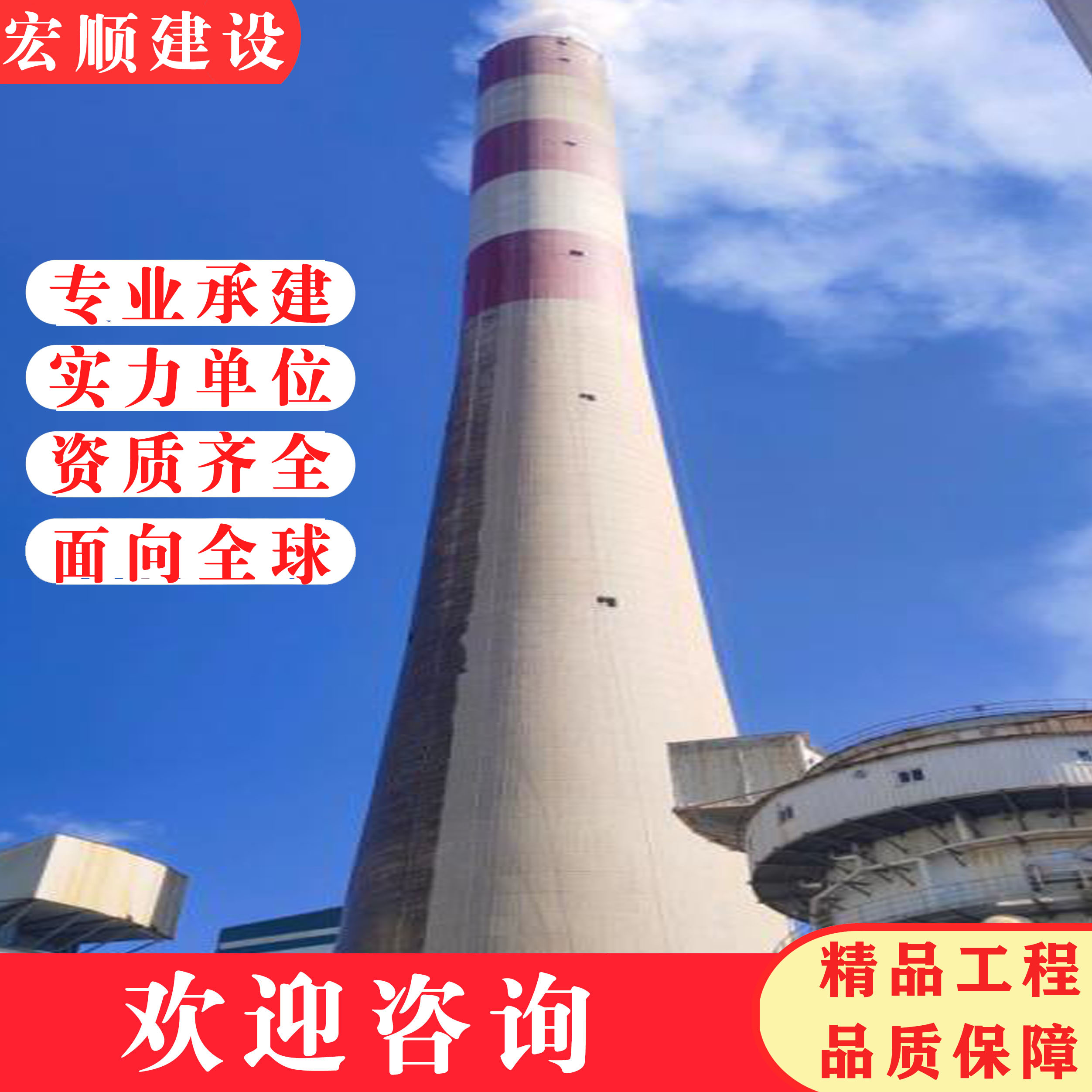 美化冷卻塔(砼煙囪刷色環(huán)航標(biāo))的筒身粘貼輕質(zhì)玻化陶瓷磚