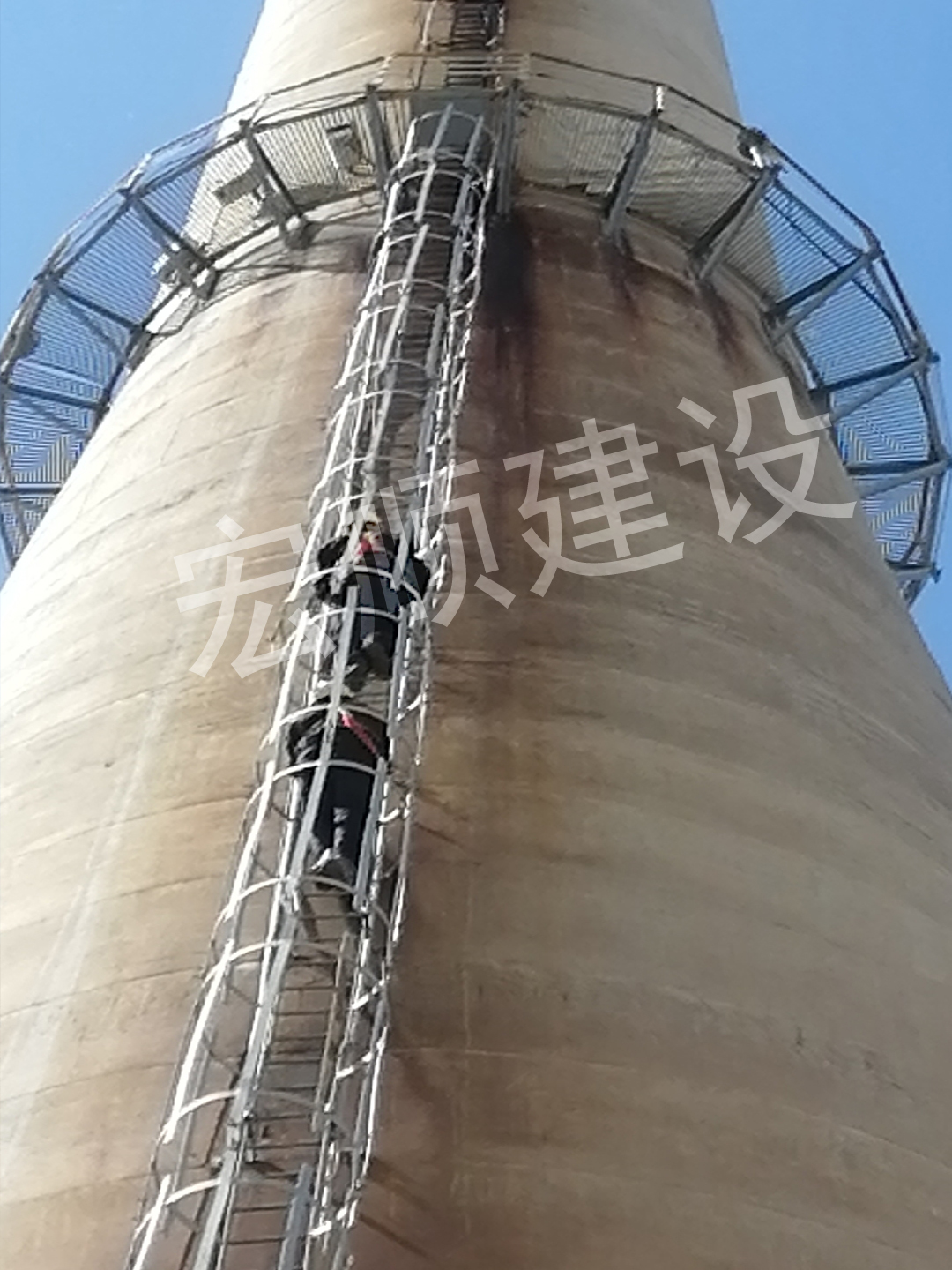 當(dāng)水泥煙囪年代久了那就需要更換爬梯平臺(tái)或者除銹防腐了