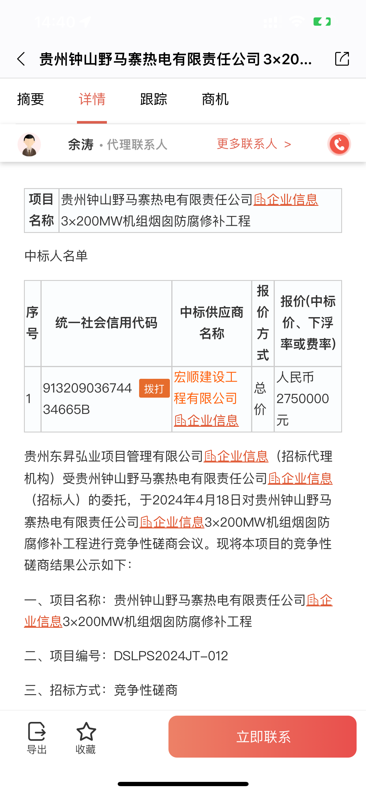 熱烈祝賀我公司中標貴州鐘山野馬寨熱電機組煙囪防腐修補工程項目